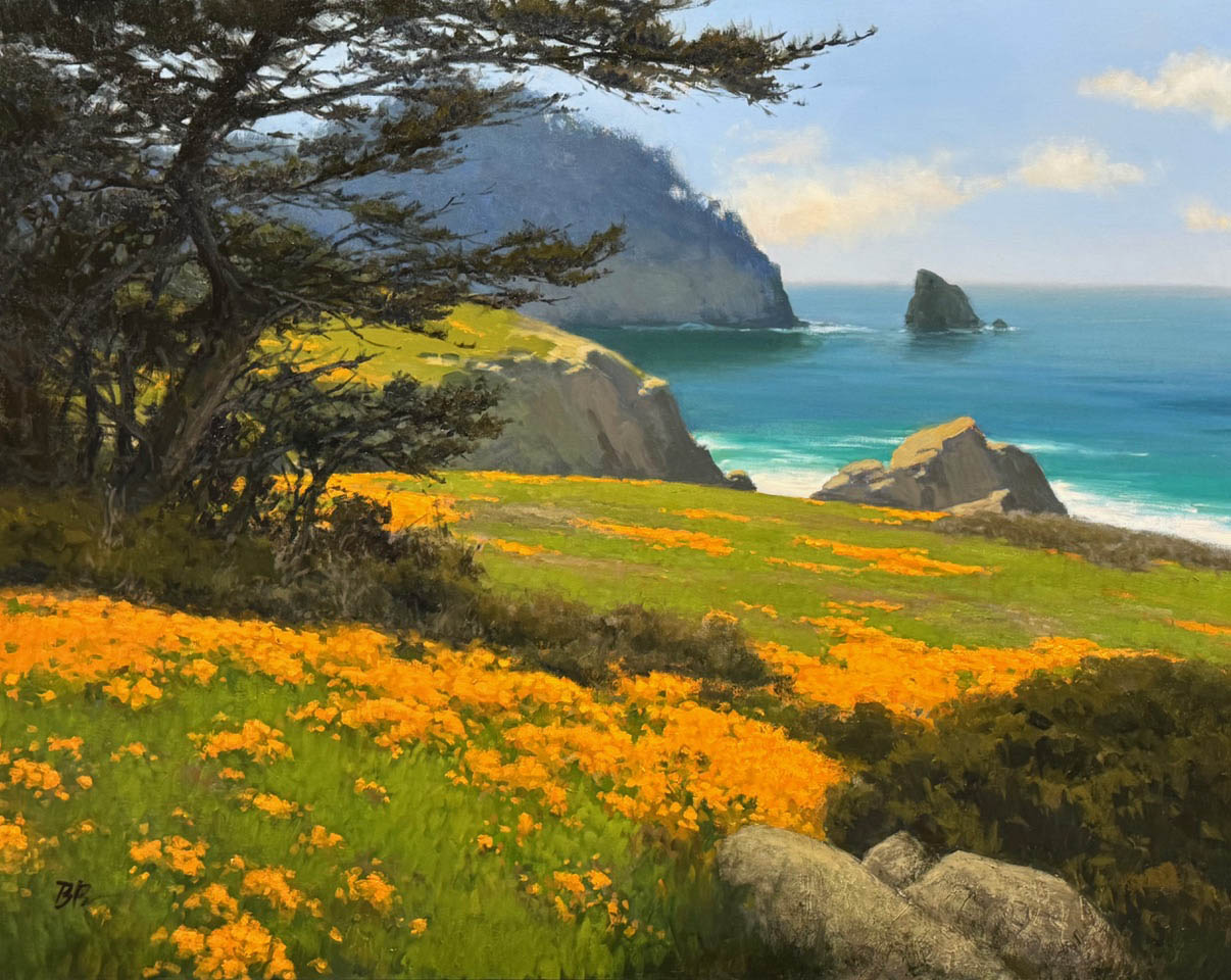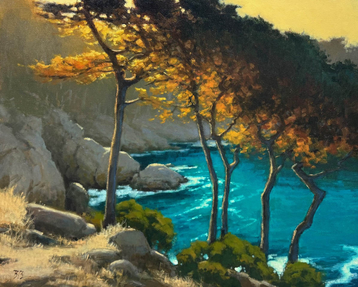 From the 1990s, Brian Blood has been painting full time as well as conducting landscape painting classes at his alma mater.  He also conducts ongoing workshops in his studio, and surrounding areas of Pebble Beach, California.