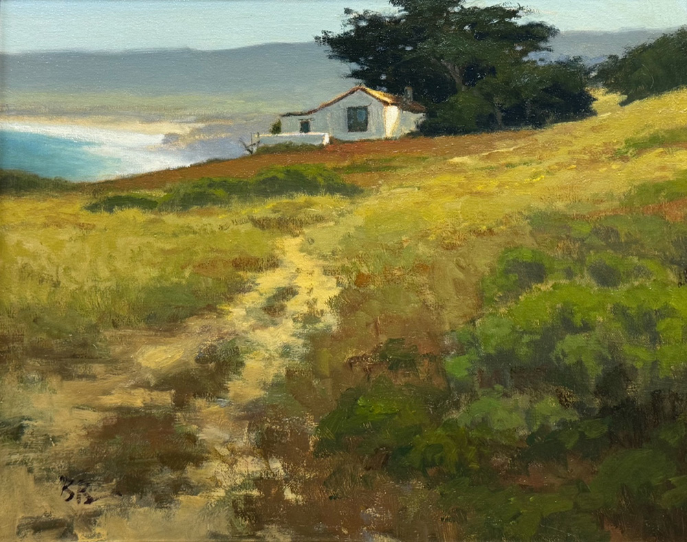Primarily a plein-air painter, Blood creates hundreds of studies directly from nature, observing the ever-changing light of day.  He then takes his studies and supporting reference photos back to his Pebble Beach studio to paint. He uses these studies as the basis for his larger scale works.