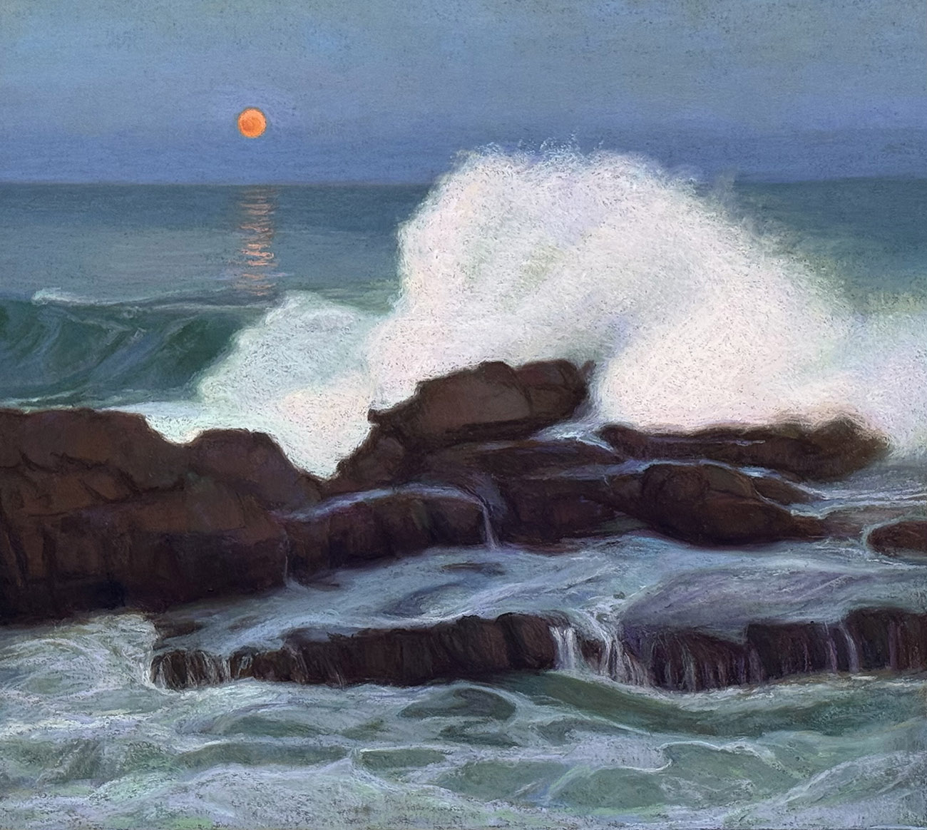 She has been an active participant with the California Art Club’s group paintouts and exhibits, including the tri-annual On Location in Malibu exhibition at the Frederick R. Weisman Museum of Art at Pepperdine University, for which her painting was selected to be on the cover of the invitation in 2006, and the poster in 2017. Her painting “Winter Sunset from my Bedroom” was selected as the cover for California Light, A Century of Landscapes: Paintings of the California Art Club, published in April 2011. Her paintings are also published in Painting California, Seascapes and Beach Towns, April 2017.
