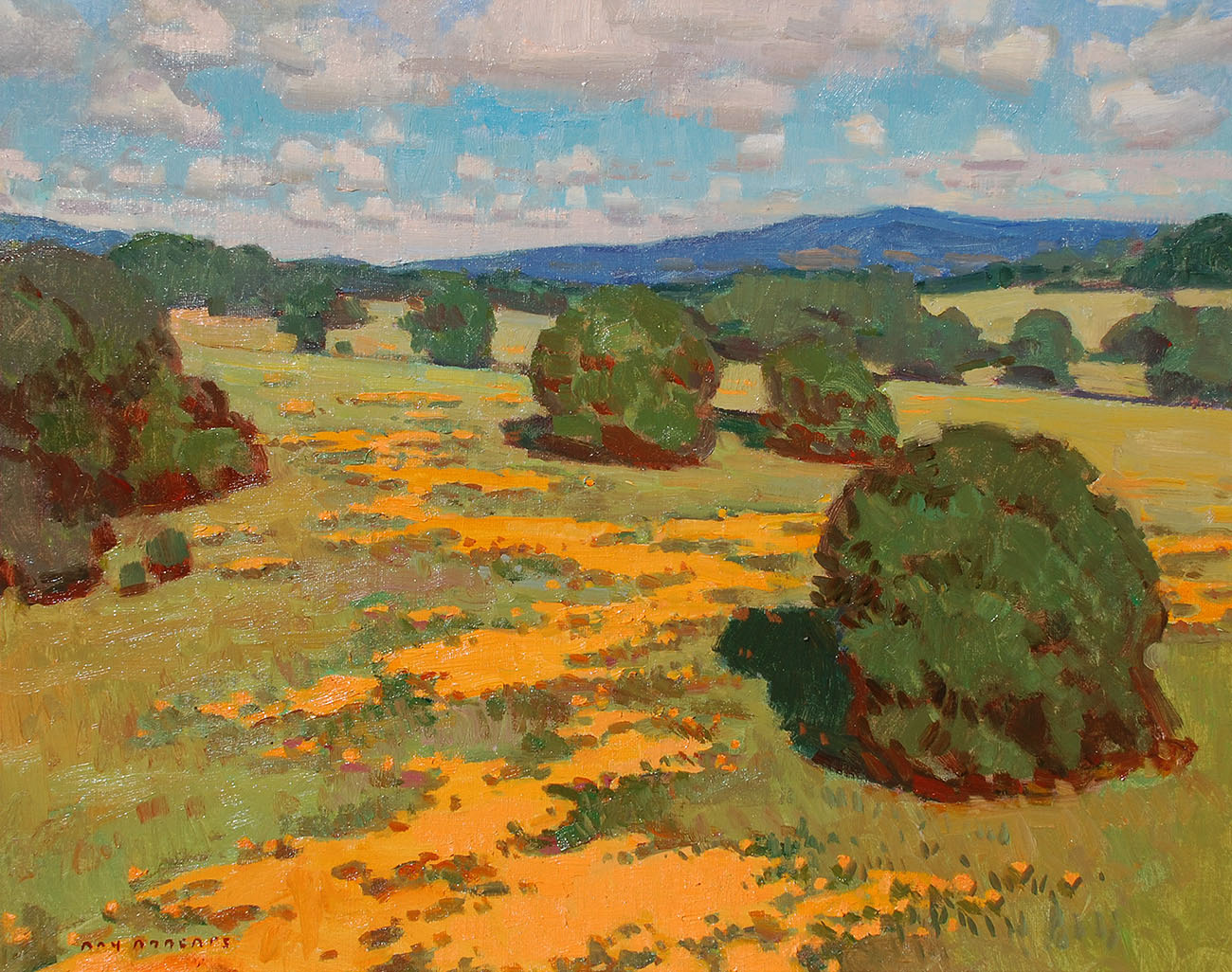 Through his evocative canvases, Ray Roberts pursues a sense of time and place, and invites viewers to embark on a visual journey to find the rhythm, beauty and intricacies in nature. He seeks an interplay of light and shadow, color and form, and searches for discovery and familiarity. Ray Roberts’ use of vibrant color, sweeping brushstrokes, bold textures, and his sensitivity to shifting patterns of light and atmosphere, project life and movement to his paintings.